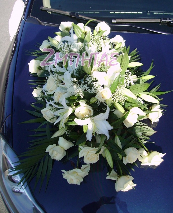 Στολισμός αυτοκινήτου με οριεντάλ λευκά και τριαντάφυλλα vendela.
