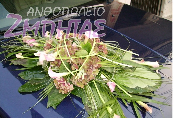 Σύνθεση αυτοκινήτου για μπροστά με ορτανσία και κάλλες.