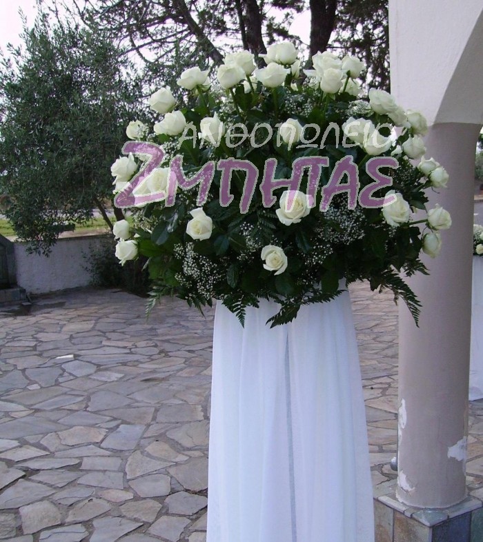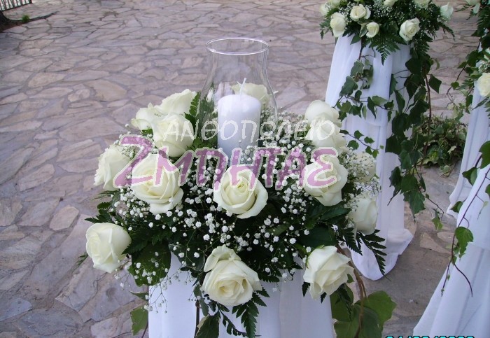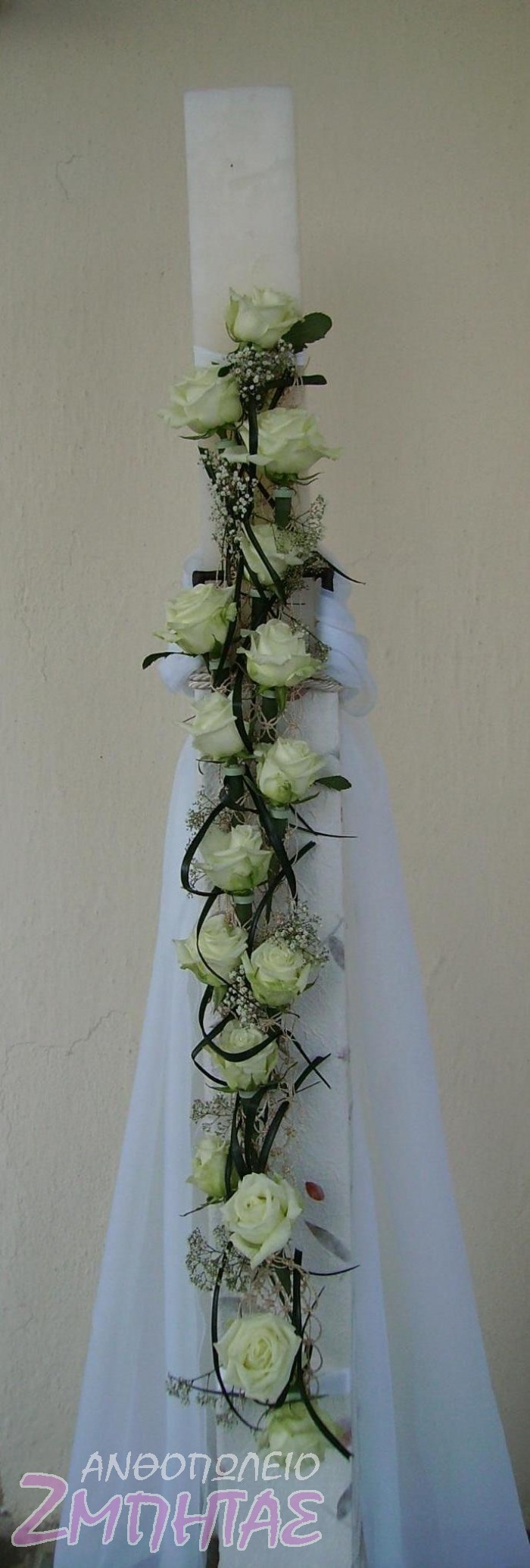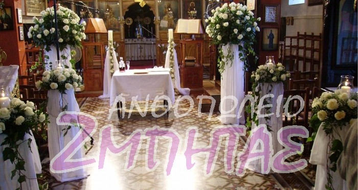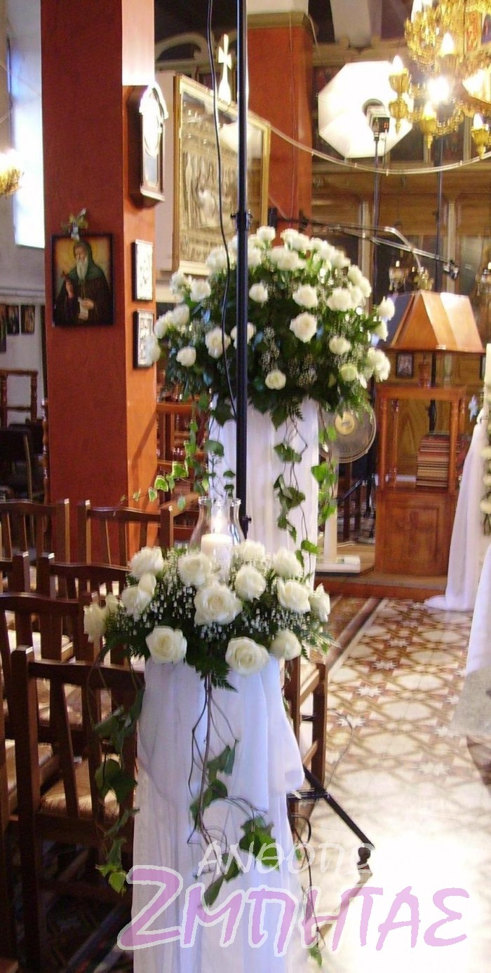 Στολισμός εκκλησίας με λευκά τριαντάφυλλα.