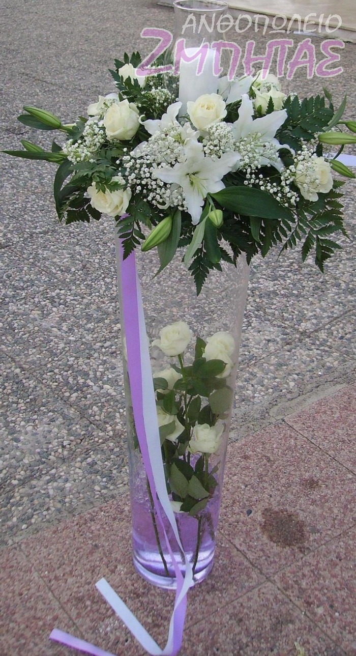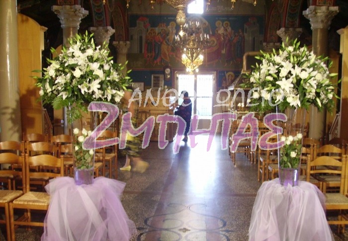 Στολισμός εκκλησίας με λευκά τριαντάφυλλα και οριεντάλ.