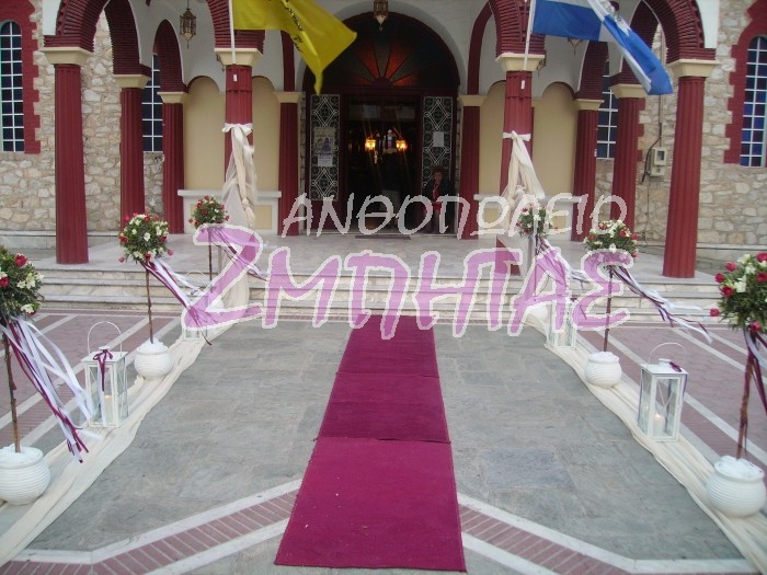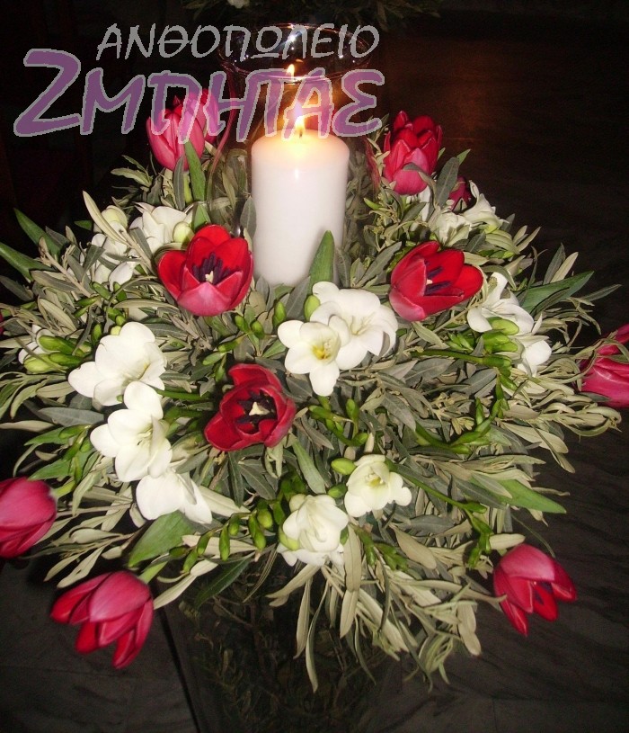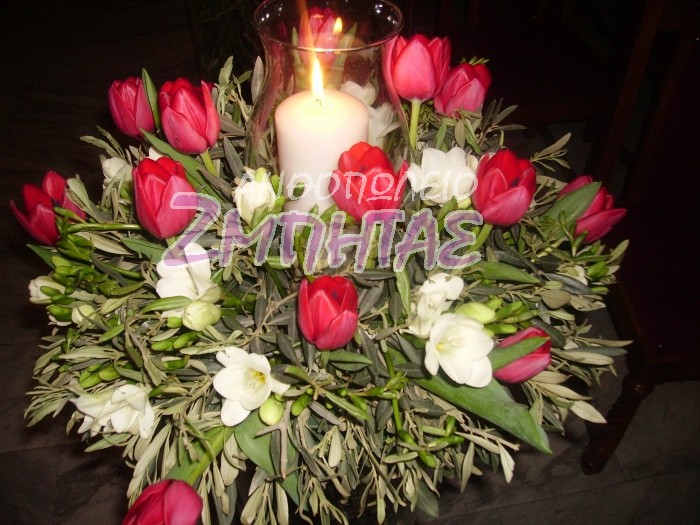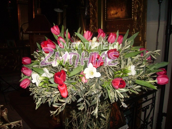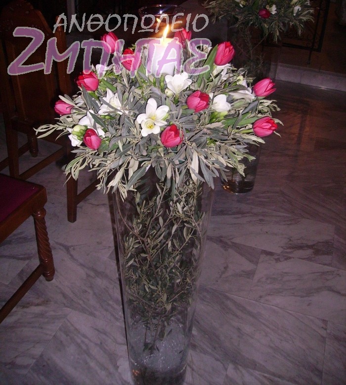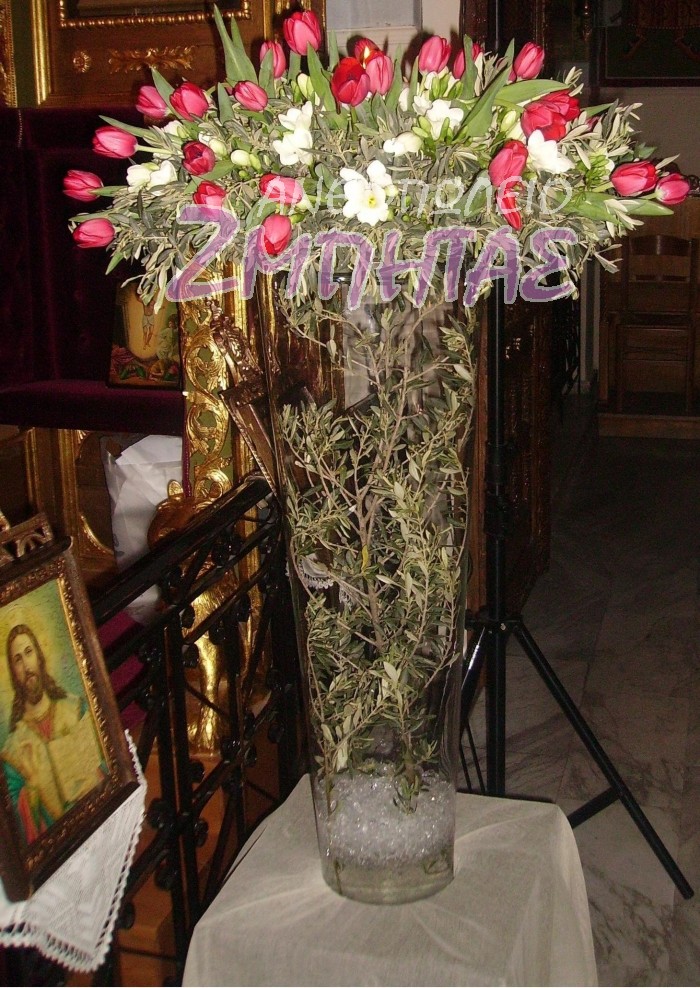 Στολισμός εκκλησίας με ελία, τουλίπες και φρέζες.