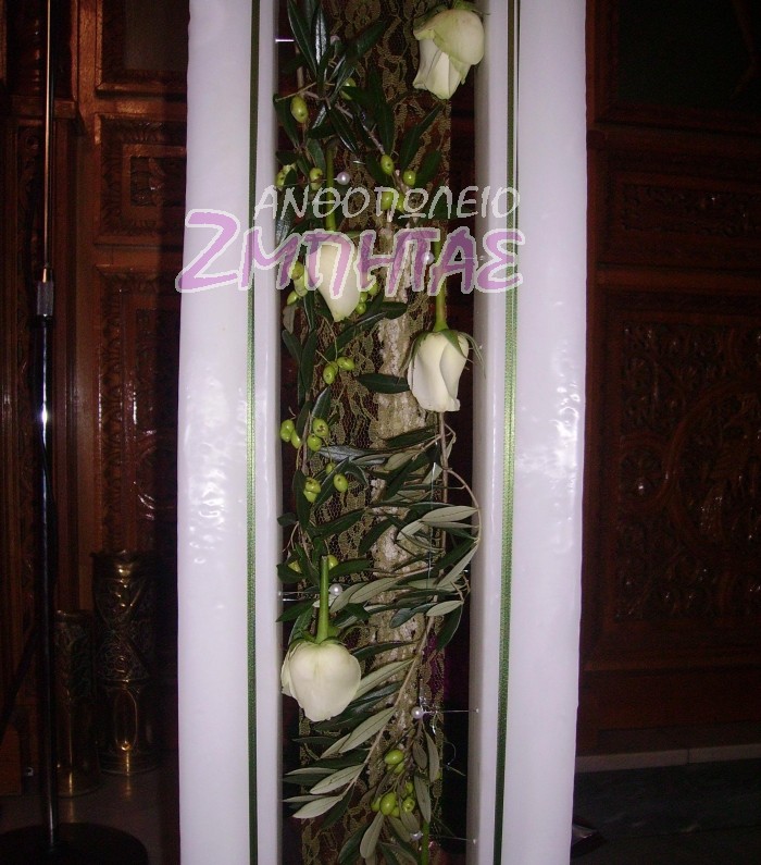 Στολισμός λαμπάδων με τριαντάφυλλα και ελιά.
