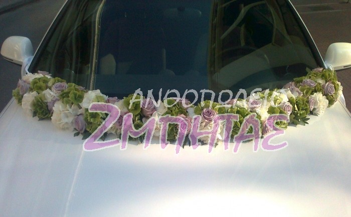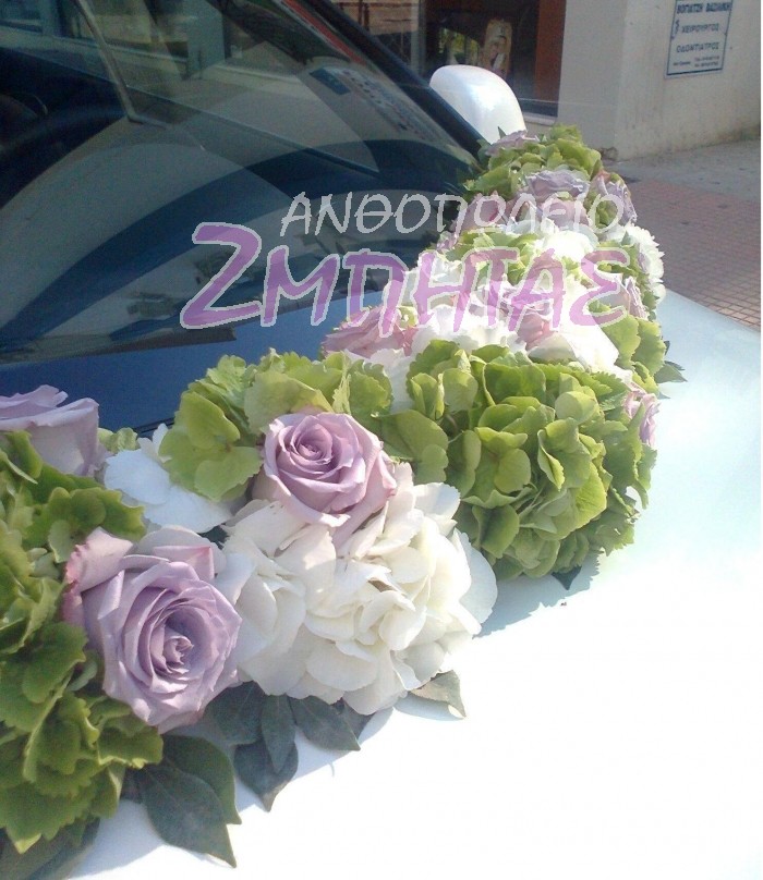 Στολισμος αυτοκινήτου με ορτανσία και τριαντάφυλλα.