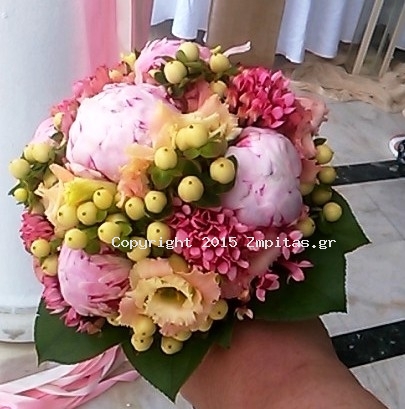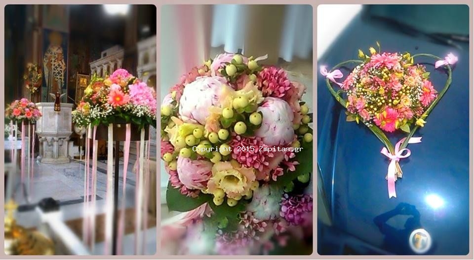Στολισμός-διακόσμηση γάμου εκκλησίας με πεόνια, μποβάρδια, λυσίανθο και πιπερίκουμ.