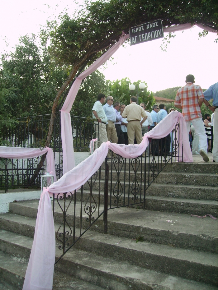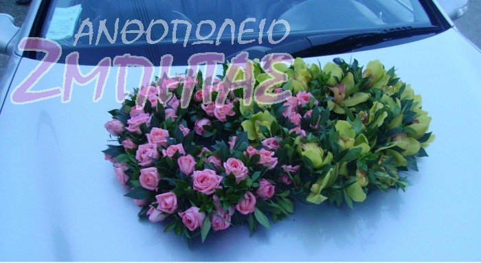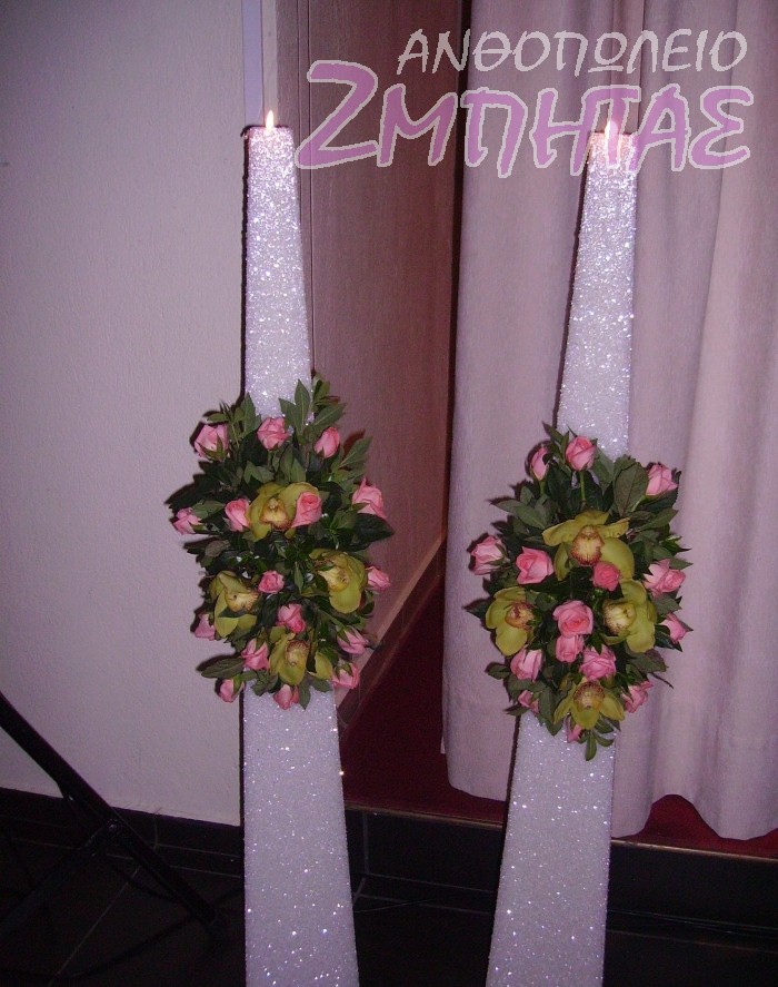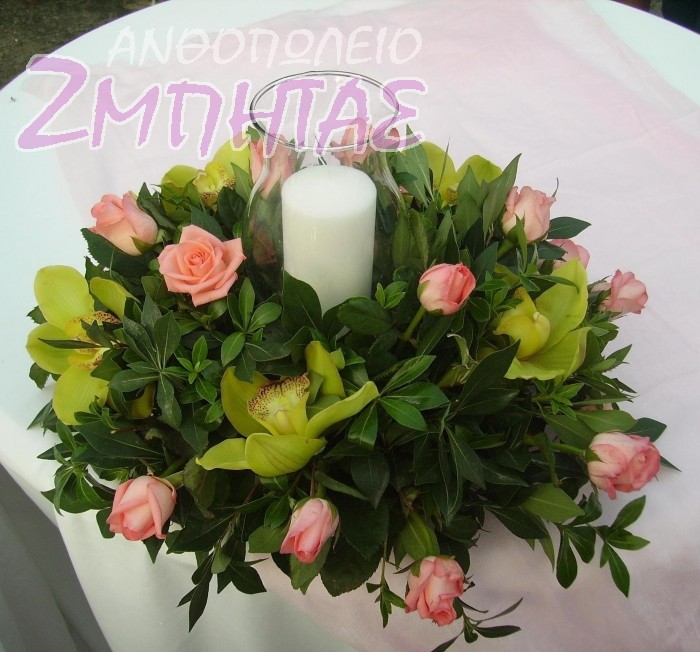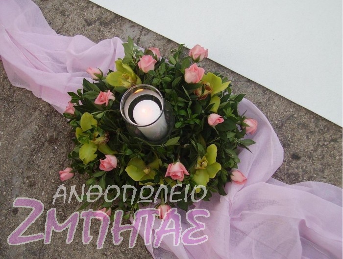 Στολισμός με τριαντάφυλλα και ορχιδέα συμπίντιουμ.