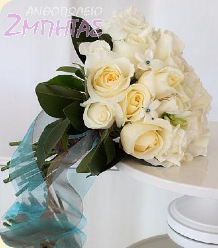 Νυφικό μπουκέτο με λευκά τριαντάφυλλα